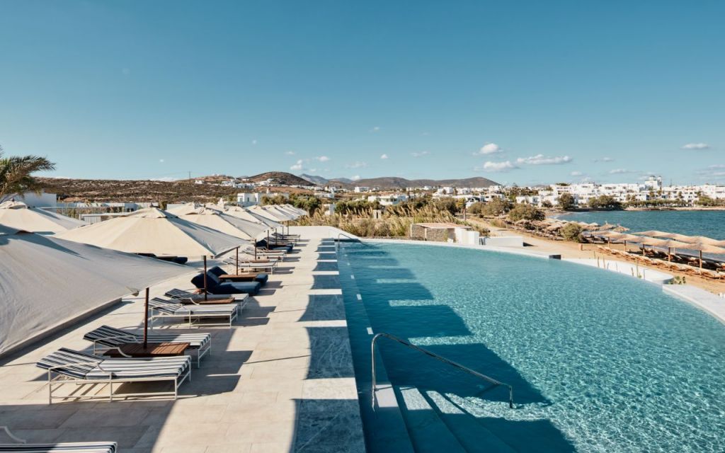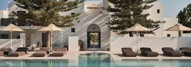Each hotel is designed to feel deeply connected to its island, from Megalochori’s medieval lanes at Vedema to the bohemian beach club energy of Cosme in Paros.